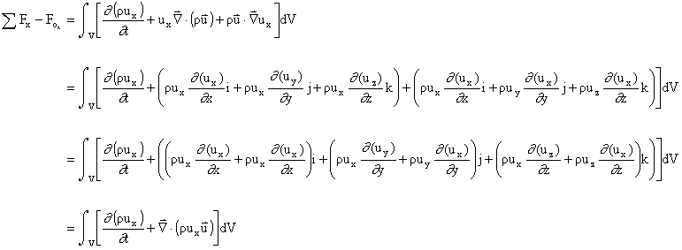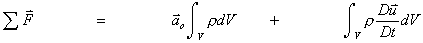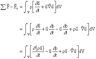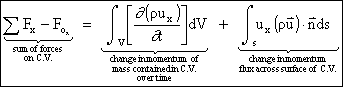 where the forces acting on the control volume may be composed of pressure forces, body forces, and skin friction