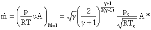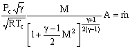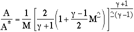 The above equation relates the flow area, the mass flow, the Mach number and the stagnation conditions. It is frequently rewritten in a non-dimensional form by dividing through by the value at M=1 (where the area at M=1 is A*):