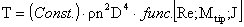 T = f(D; n; r; n; K; uo) = Const. Da nb rc nd Ke uof