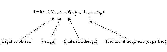 Our objective is to express thrust, T, and thermal efficiency, h (or alternatively I) as functions of 1) typical design limiters, 2) flight conditions, and 3) design choices so that we can analyze the performance of various engines. The expressions will allow us to define a particular mission and then determine the optimum component characteristics (e.g. compressor, combustor, turbine) for an engine for a given mission. Note that ideal cycle analysis addresses only the thermodynamics of the airflow within the engine. It does not describe the details of the components (the blading, the rotational speed, etc.), but only the results the various components produce (e.g. pressure ratios, temperature ratios). In Section IX we will look in greater detail at how some of the components (the turbine and the compressor) produce these effects.