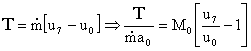 Now substituting our expressions for tb, and tt into our expression for u7/uo, and finally into the first expression we wrote for thrust, we get: