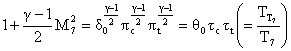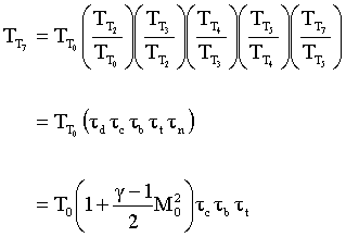 Which expresses the exit temperature as a function of the inlet temperature, the Mach number, and the temperature changes across each component. Since we will use this expression again later we will mark it with an asterisk (*).