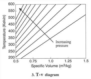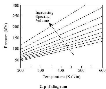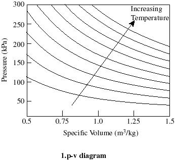 temperature line (isotherm) looks like on a p-v diagram, what a constant