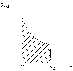 Example: Work during quasi-static, isothermal expansion of a thermally perfect gas from p1, V1 to p2, V2 .