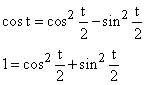 Find expressions for (sin t/2)2 and (cos t/2)2 from the Pythagorean theorem and the cosine addition theorem.