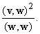 Express the square of the component of v in the direction of w in terms of dot products.