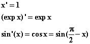 The derivatives of the three basic functions are as follows