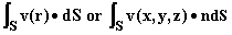 The last sentence above refers to multiplying the vector dS (remember dS is |dS| multiplied by the unit outward normal to the surface, n) by the integrand; and there are three obvious ways to do this.