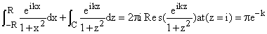 where C is the semicircle of radius R in the upper half plane, and again the integral on C goes to zero as R increases.