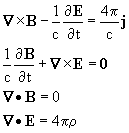 We can put together all the differential equations satisfied by electric and magnetic fields into the following list. These are called "Maxwell's Equation"' although they are much simpler than those he published in 1874. Those had the same content, more or less, but were 20 equations in 20 variables.