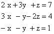 and we wish to find a solution, by which we mean to find the explicit values of x, y and z which make these equations all true.