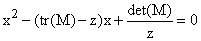 x3 - tr(M)x2 + Ax - det(M) = 0