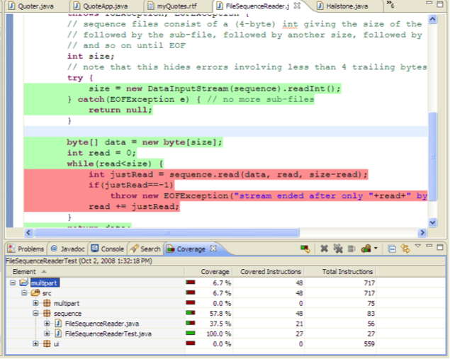 A good code coverage tool for Eclipse is EclEmma , shown on the right.