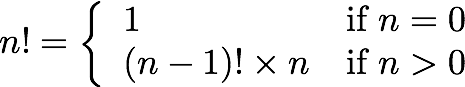 Consider writing a function to compute factorial. We can define factorial in two different ways: