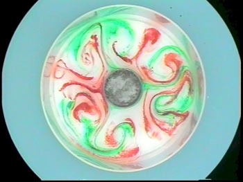 3. If the rotation rate is increased in small increments (0.2 rpm or so) we can map the transition from axisymmetric flow through regular waves to turbulent eddies.
