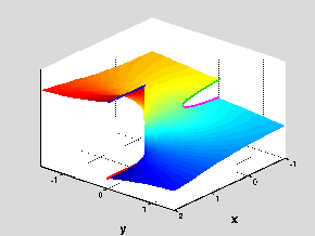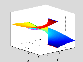 Figure 3: Surface generated by one of the branches where z=1 is not a branch point of f(z)=log(1-z1/2).