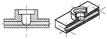 We can get around this by pretending to cut the object on a plane and showing the “sectional view”. The sectional view is applicable to objects like engine blocks, where the interior details are intricate and would be very difficult to understand through the use of “hidden” lines (hidden lines are, by convention, dotted) on an orthographic or isometric drawing.