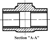 This cross-sectional view (section A-A, figure 17), one that is orthogonal to the viewing direction, shows the relationships of lengths and diameters better. These drawings are easier to make than isometric drawings. Seasoned engineers can interpret orthogonal drawings without needing an isometric drawing, but this takes a bit of practice.