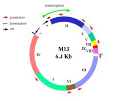 Map of M13 genome from M. Blaber. (Images courtesy of Dr. Michael Blaber. Used with permission.)