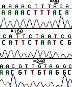 Next we will use some data from the MIT Biopolymers Facility. [_Only available to enrolled students in the class, not accessible for OCW users._] From this link, we can see sequencing traces and sequence text.