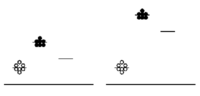 Signal:noise in arbitrary data collection. Background measurements (open circles), sample measurements (closed circles), and average values (short horizontal lines) are shown. The short line without any data points represents the reduction in average signal when background is subtracted. All measurements are with respect to an arbitrary vertical axis; the long horizontal line represents a measurement of zero.
