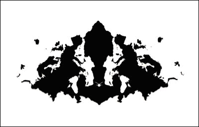 This is the Rorschach, or the ink blot test, that everyone is familiar with. Your job is to interpret this figure so that a psychoanalyst can tell you what’s wrong with you. So, is there a brave soul who wants to describe what they see?