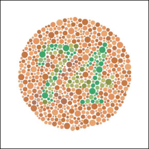 The most common type of color blindness is the inability to distinguish red and green. Can you read the number within the circle?